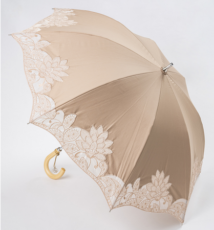 ふちの部分にオーガンジーをあしらい花の刺繡を乗せました。開いた時に程よく花の透け感が出る上品なデザインです。