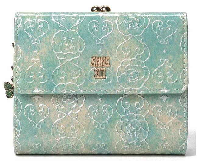 ローズハート柄のエナメル財布は同系色の色を重ねることで奥行きのある色合いに仕上がっています。