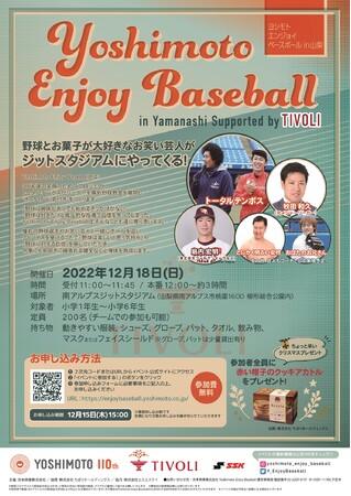 12月18日(日) 南アルプスジットスタジアム (山梨県南アルプス市) にて ”Yoshimoto Enjoy Baseball” を開催いたします。