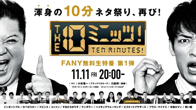 「FANY大感謝祭」開催中!『THE 10ミニッツ』第二弾に加え かまいたちMCの初の音楽番組も!人気芸人、超豪華ゲストが盛りだくさん!