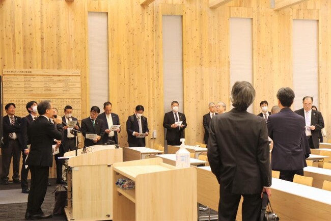 会議後は、田井企画官、位田専務理事、各学長、各大学関係者らが参加し、共育共創コモンズ(愛称:OUX オークス)の施設見学を行ったのち、終始和やかな雰囲気の中、岡山市内のホテルで情報交換会が行われました。