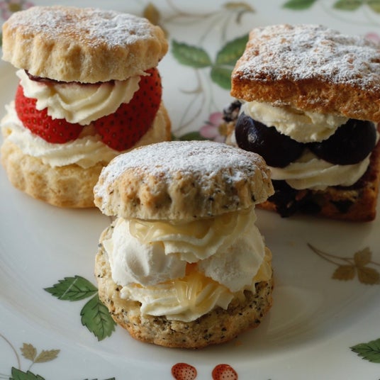 スコーンサンド(ストロベリーショートケーキスコーン、レモンメレンゲダージリンティースコーン、ダークチェリーチョコチャンクスコーン)各1個 各594円