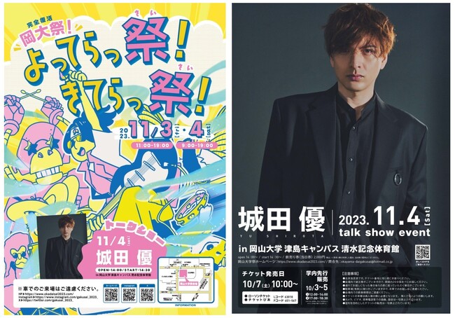 国立大学法人岡山大学(本部:岡山市北区、学長:那須保友)は、2023年11月3、4日の2日間、津島東キャンパスで「大学祭(津島祭)」を開催しました。今年度は入場制限等を撤廃。多くの在学生や地域の方々が集い、活気溢れる岡大生の姿を届けることができるような大学祭にしたいという想いから、「よってらっ祭!きてらっ祭!~完全復活岡大祭~」をテーマに掲げました。
