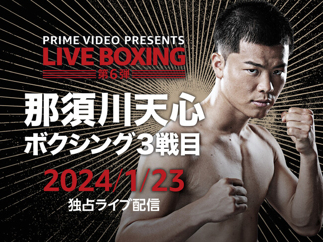 Prime Videoは『Prime Video Presents Live Boxing 6』として、2024年1月23日(火)にエディオンアリーナ大阪(大阪府立体育会館)で行われる日本スーパーバンタム級7位、那須川天心選手(帝拳)対WBA世界バンタム級13位、ルイス・ロブレス選手(メキシコ)の121ポンド(約54.8キロ)契約8回戦、WBC・WBA世界ライトフライ級王者、寺地拳四朗選手(BMB)対元WBA同級王者で現1位のカルロス・カニサレス選手(ベネズエラ)のタイトルマッチ、さらにアルテム・ダラキアン選手(ウクライナ)対ユーリ阿久井政悟選手(倉敷守安)のWBA世界フライ級タイトルマッチなどを独占ライブ配信します。