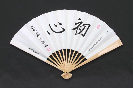 揮毫は「初心」です。日本将棋連盟謹製で、棋士が使用している扇子と同じタイプです。扇子は長さ約25.5センチ、広げたときの横幅約41.5センチ。「扇子立て入りの箱付」と「扇子単体」の2種類。いずれも先着順で、売り切れ次第販売を終了します。