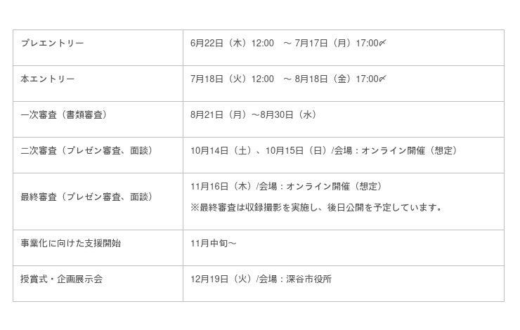 ※応募状況等によっては、スケジュールを変更する場合があります。最新スケジュールは、コンテストサイトにてお知らせします。