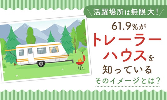 トレーラーハウスの知名度は61.9%と半数以上で、トレーラーハウスのイメージは「移動できるのが便利そう」「アウトドアやキャンプ向け」「防災・避難用として使えそう」でした。