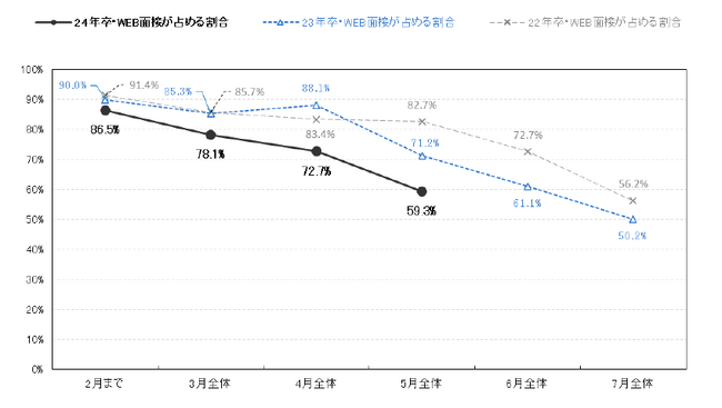 (その期間に受けた採用面接のうちWEB面接だったものの割合)