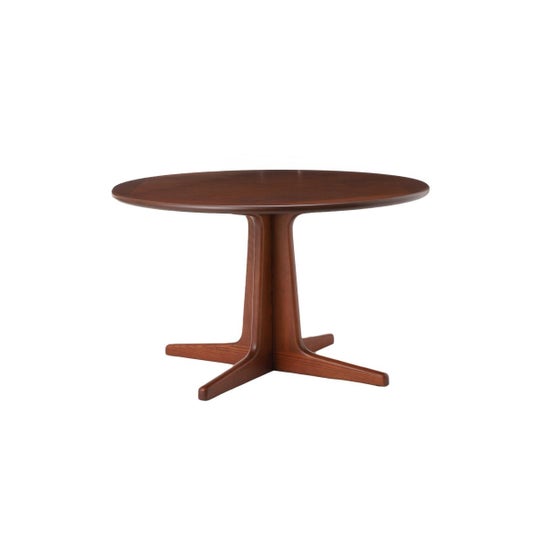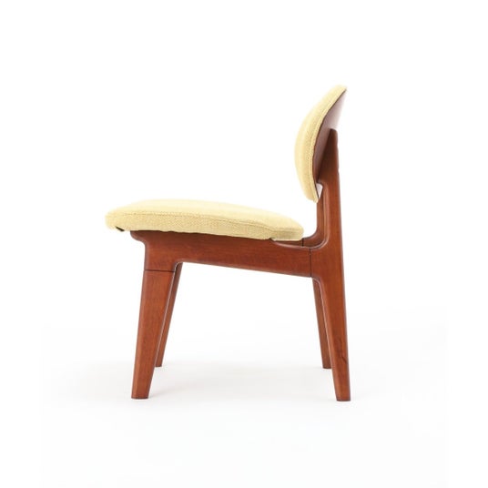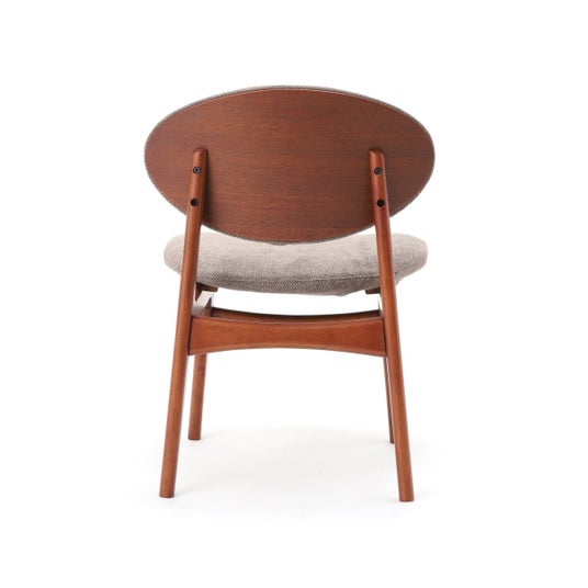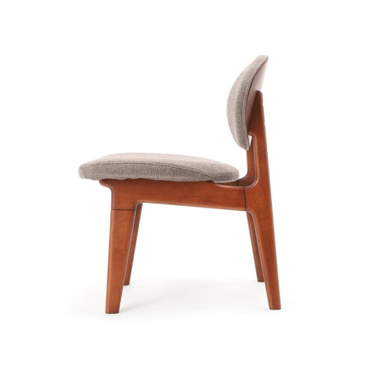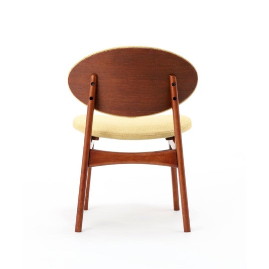天板は突板の貼り合わせ方に注意し、脚の形状と天板の模様を意図的に合わせないことで、どこにでも椅子を配置できるように。脚は強度を持たせつつ、足元をスッキリとしたデザインにし、着座時に足を放り出しても邪魔にならないように配慮した。俯瞰で見た際にも心地よい曲線を意識したデザインに仕上がっている。
