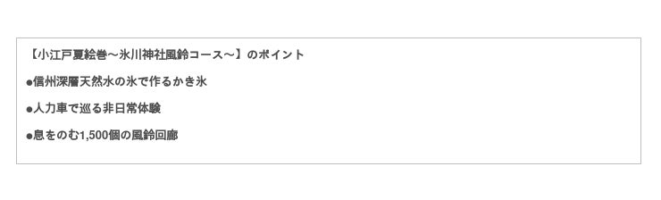 「小江戸夏絵巻 ~氷川神社風鈴コース~」概要