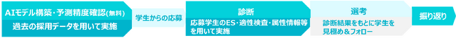 自社の課題感に沿った多角的なAI分析を提供することで、採用課題の解決と採用業務の効率化を果たし、企業の採用機会の最大化や学生との高精度なマッチングに貢献します。また、採用担当が学生と向き合う時間を確保することへの繋がりも期待でき、学生と企業双方のより満足度の高い就職活動の実現に向けて、採用業務のDX化の第一歩として導入いただけます。