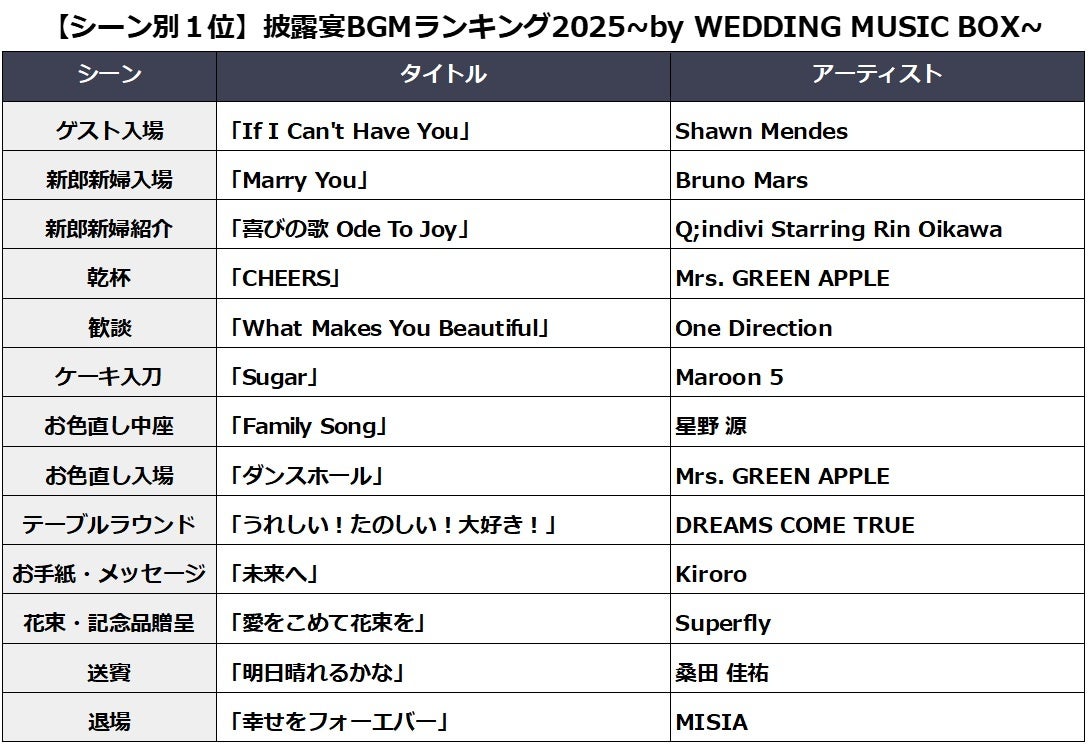 「披露宴BGMランキング2025 ~by WEDDING MUSIC BOX~」