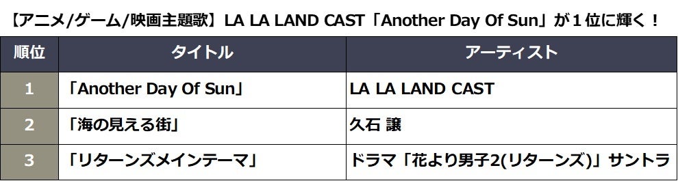 アニメ/ゲーム/映画主題歌トップ3※1、各シーン別トップ3