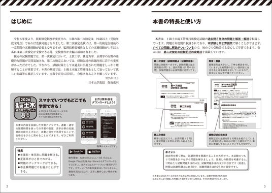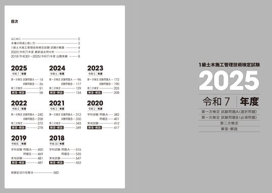 令和7(2025)年度、令和6(2024)年度、令和5(2023)年度、令和4(2022)年度、令和3(2021)年度、令和2(2020)年度、令和元(2019)年度、平成30(2018)年度に出題された、第1次検定(学科試験)・第2次検定(実地試験)の過去問を収録しています。