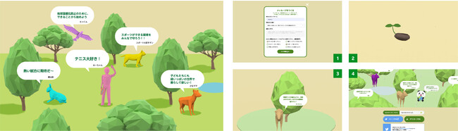 ・有明テニスの森をイメージした、一般の方のメッセージ投稿を元に広がる3Dアニメーション空間のオンライン体験