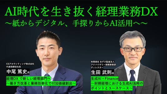 基調講演では、CSアカウンティングの中尾篤史社長が、経理DXの重要性や経理部門のあるべき姿について分かりやすく解説。特別講演では、あずさ監査法人の生田武則氏が、経理財務における生成AI活用のポイントと具体的事例や導入の進め方などについて紹介します。