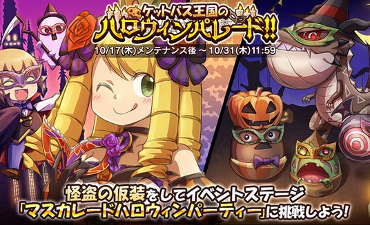 アクションパズルRPG『ケリ姫スイーツ』は、イベント「ケットバス王国のハロウィンパレード!!」を2024年10月17日(木)より開催いたします。