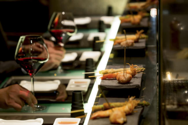 鮑や和牛などシェフが厳選する素材で創り上げる串料理や、とん平焼き、お好み焼きなど、ホテルメイドの王道大阪グルメとソムリエセレクトのワインを愉しめる”大人の隠れ家レストラン”「味寛」では、雨の日限定でスパークリングワイン 又は ソフトドリンクをプレゼント。蒸し暑さも吹き飛ばす、すっきりとした味わいのスパークリングワインと揚げたての串料理を、自分へのご褒美に。