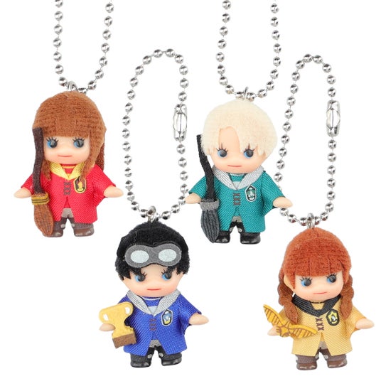 ホグワーツの4寮の制服や、クィディッチのユニフォーム、ホグワーツと三大魔法学校対抗試合を行ったボーバトンとダームストラングの制服からインスパイアされたキューピーのボールチェーン付きマスコットです。髪型や髪色、小物などがそれぞれ違っていて、集めるのが楽しくなるアイテムです。