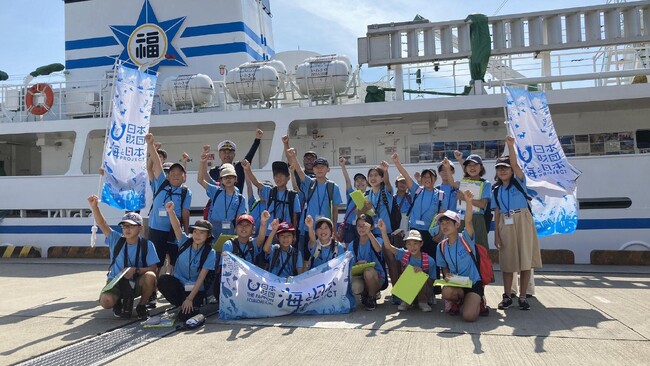 炎天下の中、「ぶー」と大きな音が鳴り響きました。この音は、福島県立小名浜海星高校の練習船「福島丸」の汽笛です。練習船「福島丸」は、イベントに参加をした23名を乗せて、いわき小名浜の海を航海しました。今回の参加者23名は、漁獲量が減った「常磐もの」の「カツオ」を学びます。子供たちは、先にペットボトルが装着してあるオリジナルの竹竿を使用して、カツオの一本釣り体験を行いました。竿の引き上げは、タイミングを合わせて行う必要があり、子供たちも滅多にない経験をドキドキしながら体験しました。また、船内では福島県立小名浜海星高校の生徒が、クイズ形式で「カツオ」を紹介。クイズの景品は、福島県立小名浜海星高校の生徒が手作りで制作してくれた、オリジナルのキーホルダー。参加した子供たちは、楽しみながら「カツオの漁」を学びました。