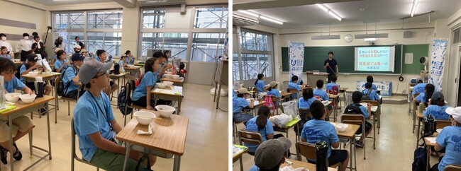 最後は、「海の授業」です。小名浜海星高校の手代森先生が、「常磐もの」の説明から、気候変動により海の環境が変化していることを教えてくれました。また、「カツオ」も黒潮の流れの変化などにより、少しずつ獲るのが難しくなっている状況を教えてくれました。講義は、小名浜海星高校の斎藤先生が、「カツオ」の普段は捨てられてしまう部位を使用して調理した「あら汁」を食べながら、おこなわれました。実際に味わう事で、海の資源を無駄なく、有効活用する事の大切さを教わりました。本イベントは、次回10月8日(日)に、相馬で「トラフグ」を学ぶ予定です。