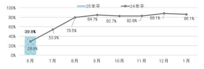 6月時点のインターンシップ・仕事体験の累積参加率は前年比10.9pt増の39.8%【図1、2】