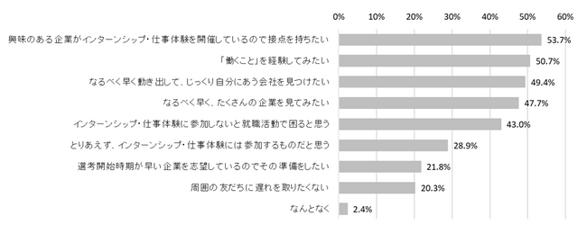 インターンシップ・仕事体験に参加する際の心境は「興味のある企業がインターンシップ・仕事体験を開催しているので接点を持ちたい」が最多で53.7%【図5】