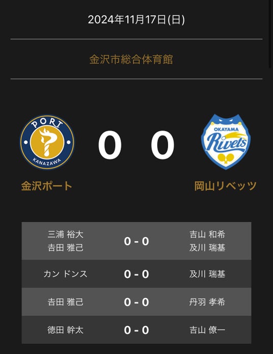 ジマリーグ 2024-2025シーズン公式戦 11月17日開催 金沢ポート vs 岡山リベッツ 対戦オーダーを発表いたします。