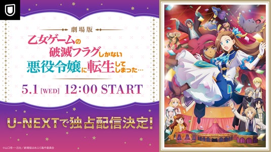 USEN&U-NEXT GROUPの株式会社U-NEXT(本社:東京都品川区、代表取締役社長:堤 天心)が運営する動画配信サービス「U-NEXT」は、2024年5月1日(水)より劇場版『乙女ゲームの破滅フラグしかない悪役令嬢に転生してしまった…』を独占配信いたします。