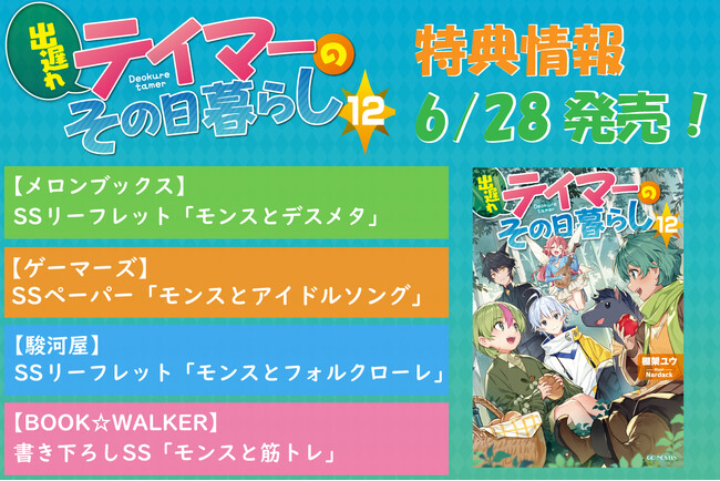 マイクロマガジン社(東京都中央区)は、GCノベルズ『出遅れテイマーのその日暮らし 12』(小説:棚架ユウ/イラスト:Nardack)を6月28日に発売いたしました。
