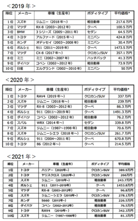 ・対象データ:国内最大級の中古車情報メディア『カーセンサーnet』