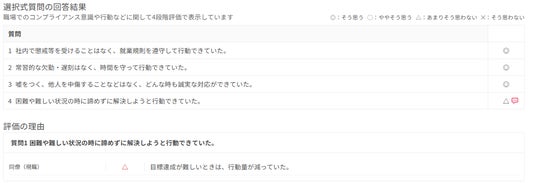 回答が完了すると、結果をレポート表示できます。結果は『ジョブカン採用管理』に登録した候補者情報と自動連携するため、二重管理や転記の手間を削減し、情報の一元管理が可能です。