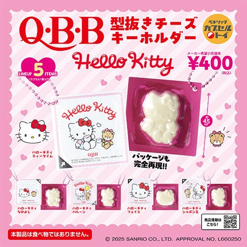 みんな大好きQ・B・B 型抜きチーズのぷにぷに感やパッケージをそのままに、ミニチュアで表現したキーホルダーの第2弾として、ハローキティがコラボした商品を再現した「Q・B・B型抜きチーズホルダー Hello Kitty」が新登場!