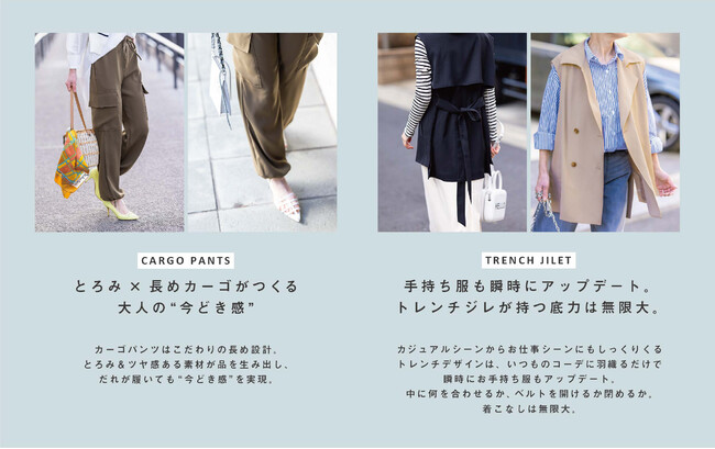大人気ブログとのコラボレーション第7弾大人カジュアル・春のマストアイテム「カーゴパンツ」と「トレンチジレ」をラインナップ