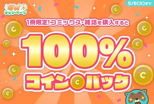 おすすめ作品を読むと300ボーナスコイン以上GETできるほか、人気作品1巻無料&半額キャンペーン、コインやコミックスの購入で全額還元されるお得なコインバックキャンペーンも実施!期間限定のお楽しみ企画が満載です!