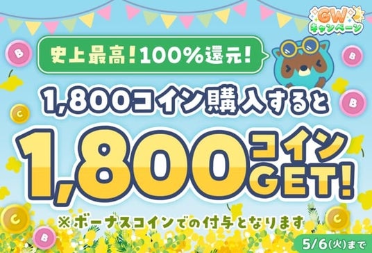 期間中に1800コインを購入すると、1800ボーナスコインがもらえるお得なタイムセールを開催!!