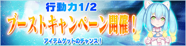 配信内容:期間中、「ストーリークエスト Season1 1 章~最終章」、「ストーリークエスト Season2 1 章」の消費行動力が 1/2!
