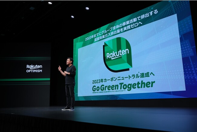 初日に行われた「Rakuten Optimism 2022 メインキーノート」では、楽天の代表取締役会長兼社長である三木谷 浩史が、今年のイベントテーマとなっている「Tech&Green 未来、動く、ここから」について、テクノロジーを通じた楽天の挑戦や、同日に発表した「2023年カーボンニュートラル達成宣言」をはじめとするグリーンな社会の実現に向けた取り組みについて語りました。