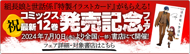 マイクロマガジン社(東京都中央区)は、コミックELMO『組長娘と世話係』(漫画:つきや)の最新刊発売を記念したフェアを全国の対象書店にて7月10日(水)より順次開催いたします。