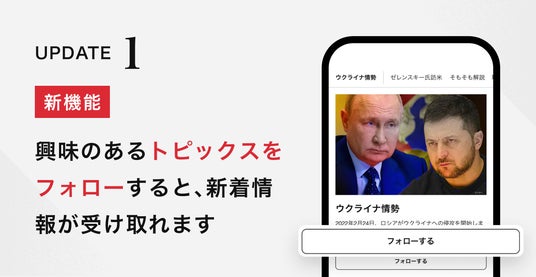 連載や記者に加え、最新記事や経緯をまとめた「トピックス」※もフォローできるようになりました。記事本文下などに関連トピックスが表示されるようになり、ワンタップでフォローできます。
