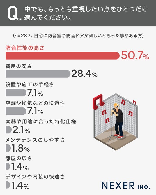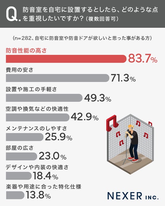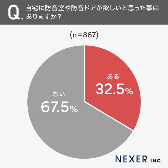 株式会社NEXER・自宅に防音室や防音ドアが欲しいかに関する調査