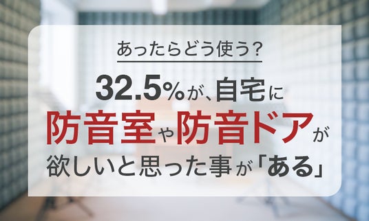 32.5%の方が、自宅に防音室や防音ドアが欲しいと思ったことがあり、「音楽や楽器を楽しみたい」「生活音を気にせず過ごしたい」「ペットの声で近隣に迷惑を掛けたくない」などが多く見られました。