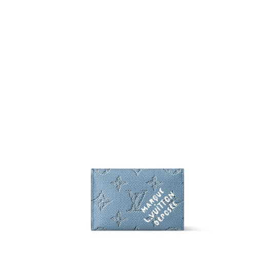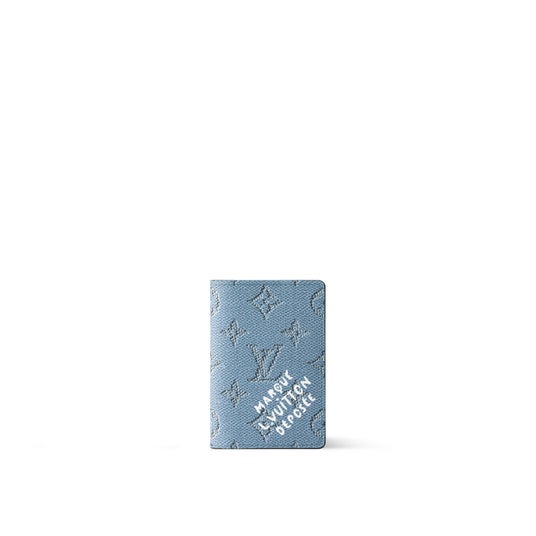 カードケース「オーガナイザー・ドゥ ポッシュ」。前面には「Marque L. Vuitton Deposee」シグネチャーを、内装にはストライプのレザーライニングを配しました。3つのカードスロットと5つの内ポケットに加え、外ポケットも備えた実用的なアイテム。