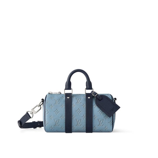 「キーポル・バンドリエール 25」は、サイドバンドと両端の補強ストリップ、2本のトップハンドルをレザーのトリミングで仕上げています。取外し & 調節可能なストラップでクロスボディバッグやショルダーバッグとしても楽しめるデザイン。