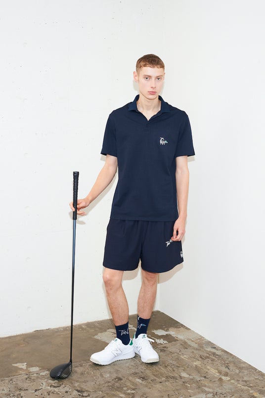 ゴルフウェアのマナーやルールは重んじながらも、既成概念にとらわれないファッションとしての自由さを提案する両ブランドのフィロソフィーが共鳴して誕生した、ホワイトとネイビーのシックなコレクションになっています。