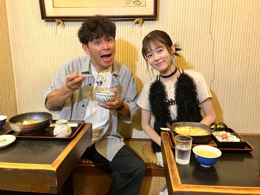100種類を超えるメニューの中から岡田さんは、えびの天ぷらを人参や大根おろし、かいわれと共に味わう暑い夏に人気の「えび磯おろし」を、川口さんは、きしめんをすき焼きスタイルで頂くあっさりとした出汁が特徴の「文化定食」を堪能!