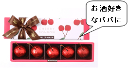 お酒好きなパパに。1年間キルシュ酒に漬け込んだ国産さくらんぼをフォンダンとスイートチョコで包みました。