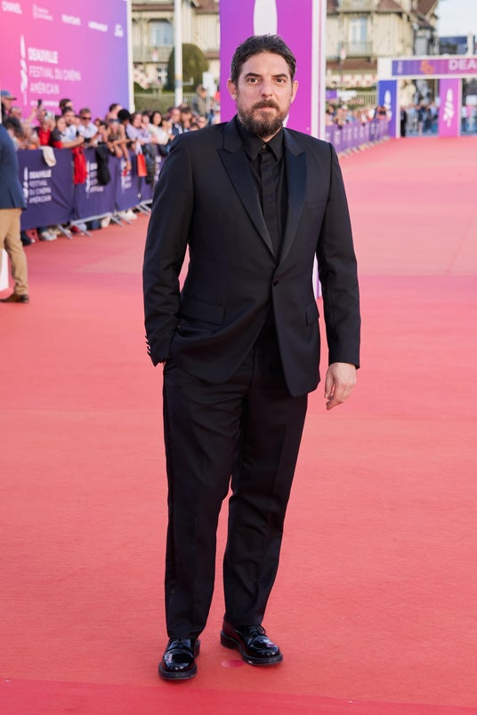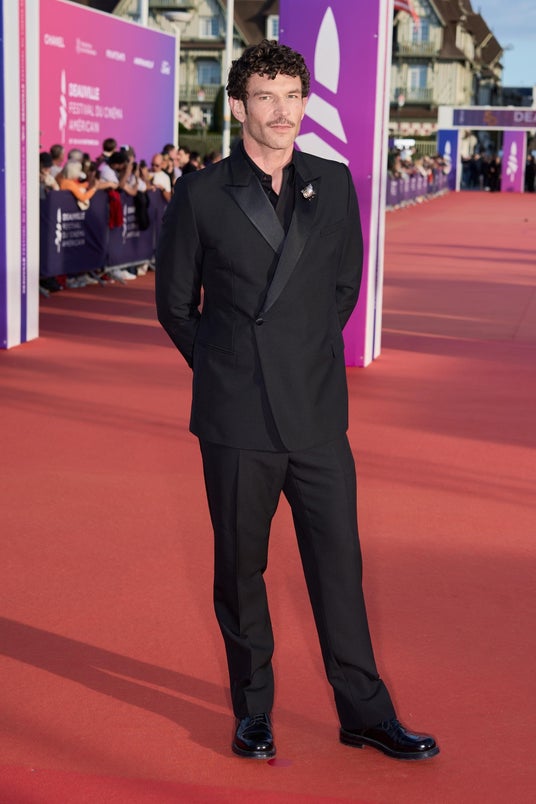 アルノー・ヴァロワはメンズ コレクションより、ブラックのウールシ&ルクのピークドラペル タキシード、クラシックなブラックのコットンシャツ、シルバーのブラスシェルブローチ、ブラックレザーの「Dior Carlo」ダービーシューズを纏ってレッドカーペットに登場しました。