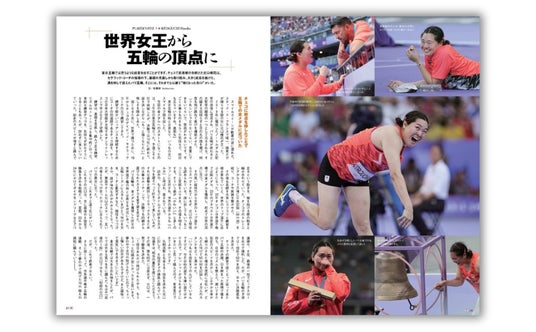 北口榛花選手(陸上トラック女子やり投 )、早田ひな選手(卓球女子シングルス&女子団体&混合ダブルス)のメダルまでのストーリーや、柔道・全日本男子監督 鈴木桂治氏への独占インタビュー、スペシャルコラムなど。読み物も充実しています。