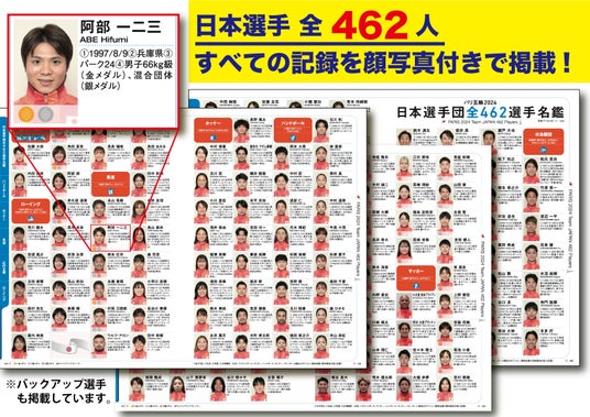 世界文化社は、パリ五輪の熱戦・名シーン、色褪せぬ永遠の「記憶」を、感動的な写真と共に収録した完全版『パリ五輪2024メモリアルフォトブック』を8月20日(火)に発売しました。興奮と感動が、再び脳裏によみがえる決定的瞬間の写真やメダルの裏に隠された物語を掲載。また、日本選手団全462選手の写真付き名鑑と、全32競技全メダリスト& パーフェクトリザルトを収録した「記録」としても永久保存版の1冊です。